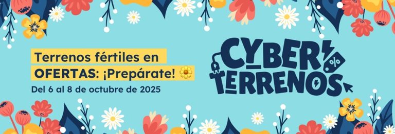 Este 6 de octubre damos inicio a Cyber Terrenos 2025, evento en el que encontrarás grandes descuentos en parcelas seleccionadas de inmobiliarias que publican en PortalTerreno.
